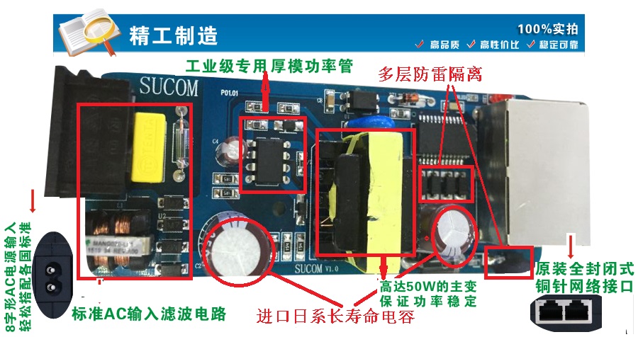 SUCOM industrial operation grade 24 48V4 core 8 core Gigabit 1000m POE power supply module