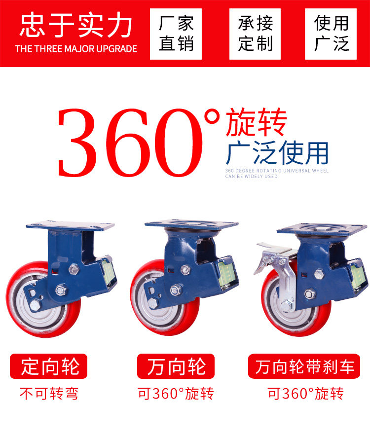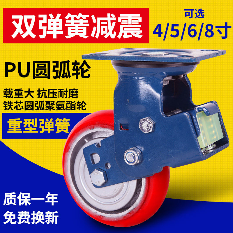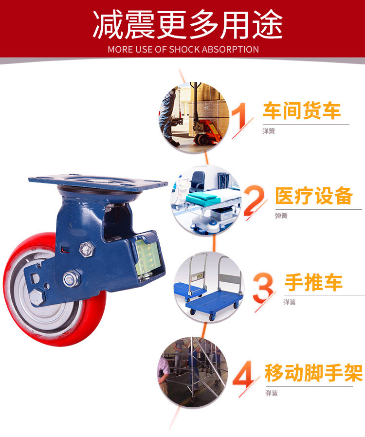 Heavy 4568-inch cast iron core PU damping castors spring damping universal castors polyurethane wheel trolley special