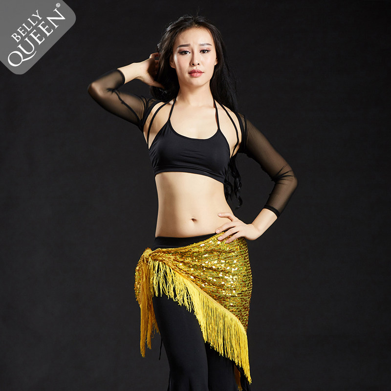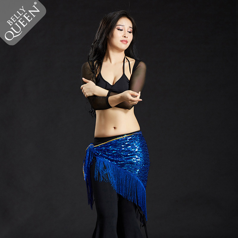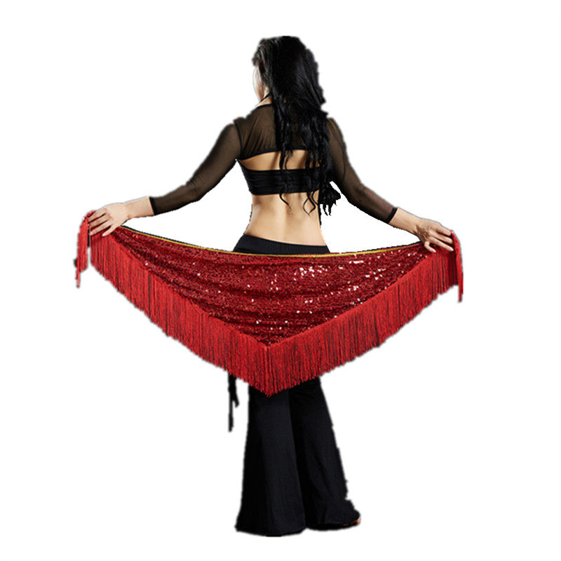 Dancer belly dance waist chain New fringed oriental dance beginner practice hip scarf skirt Sequined triangle scarf