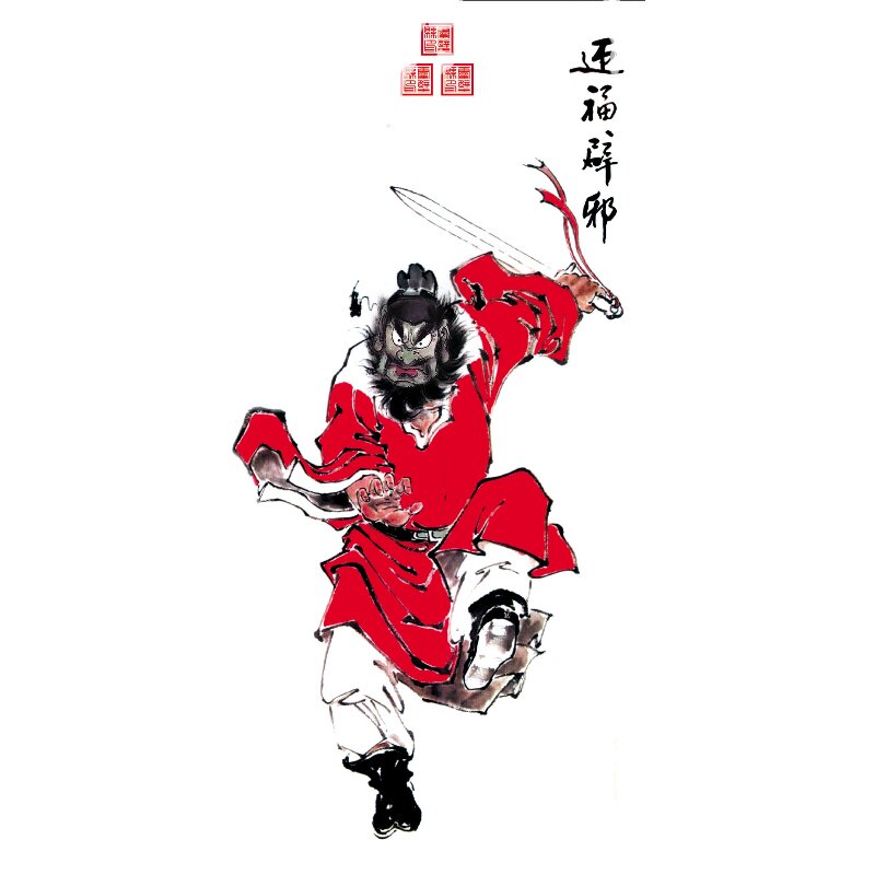 Zhong Kui's portrait is pure handmade Chinese painting cinnabar figure painting Zhongtang decorative painting hanging painting intangible cultural porch living room