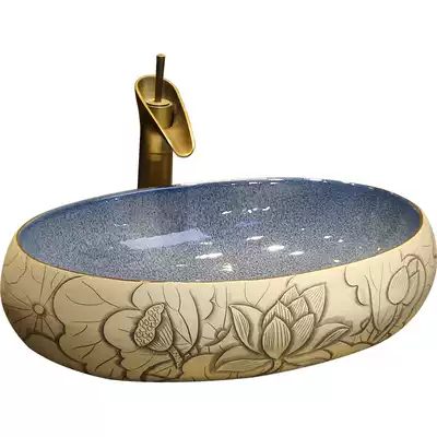 Jingyan new Chinese antique Taiwan upper basin oval ceramic washbasin household dressing room retro table wash basin