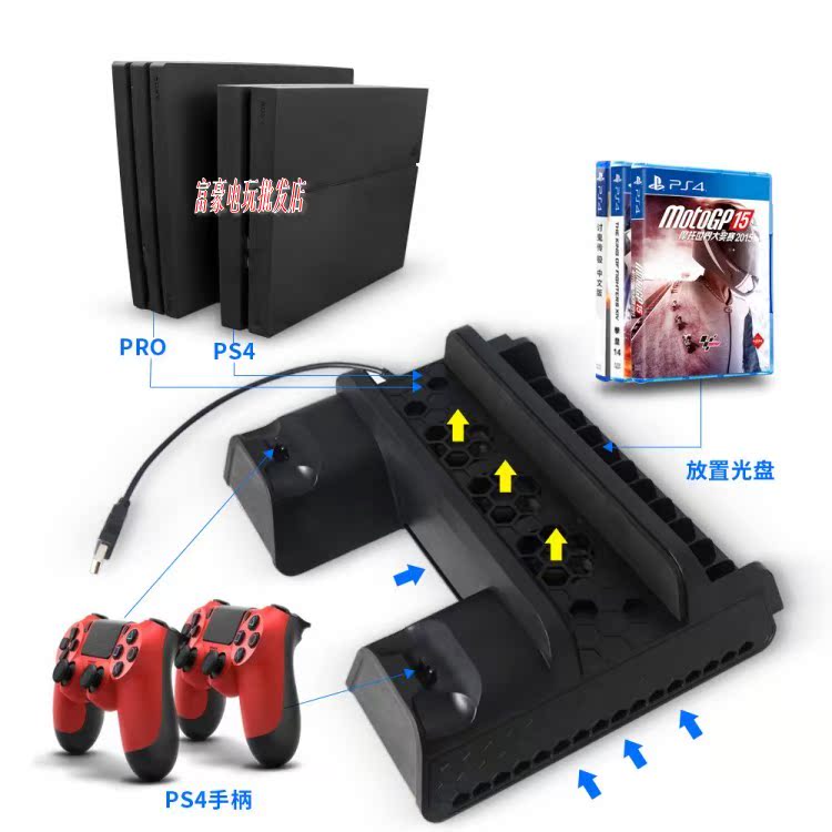 Original fit PS4 SLIM Pro multiple all-in-one fan base bracket handle double-charge radiating fan disc holder accessories
