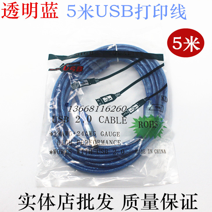 Transparent blue USB printing line USB2 0 printing line square mouth printing line 1 5 meters 3 meters 5 meters 10 meters
