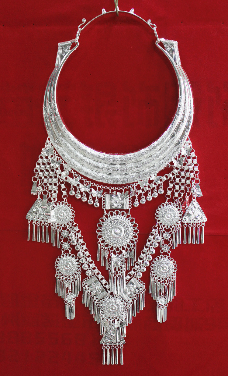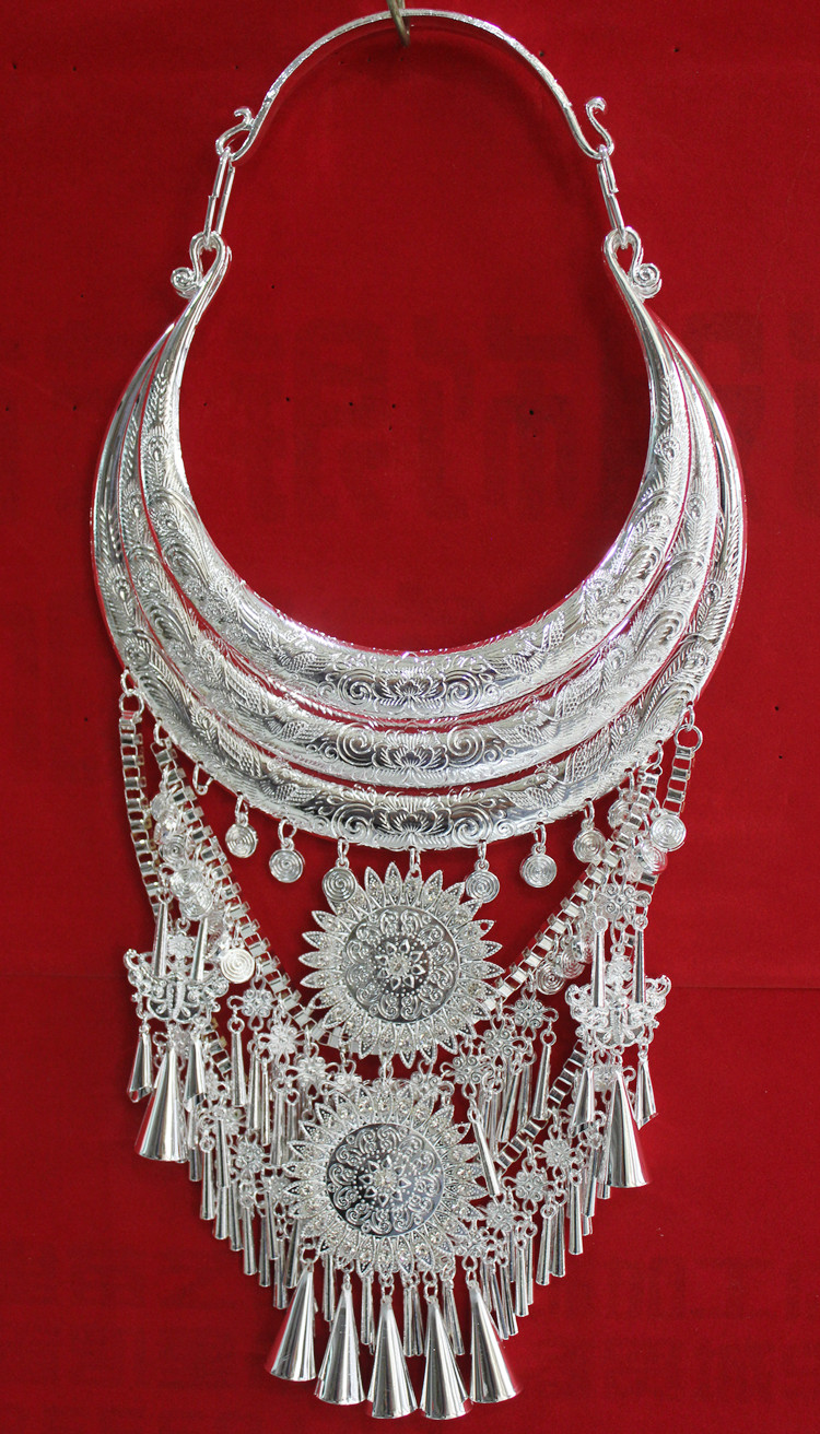 The new Dong and Miao dance performance costume silver headdress performance costume women's single hanging only three flower collars