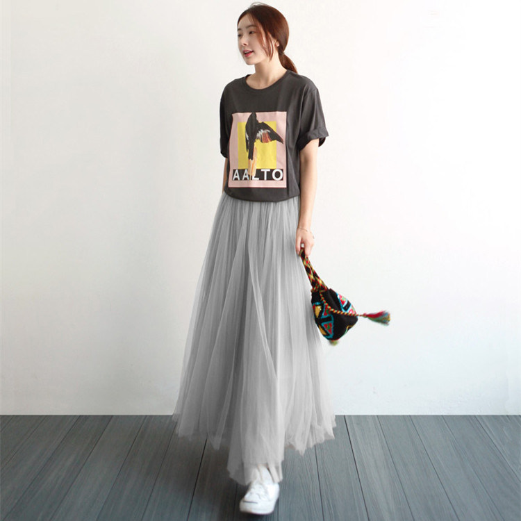 2020 spring and summer new Korean version of the yarn skirt skirt women's high waist in the long version of the a-line skirt wild mesh tutu tide