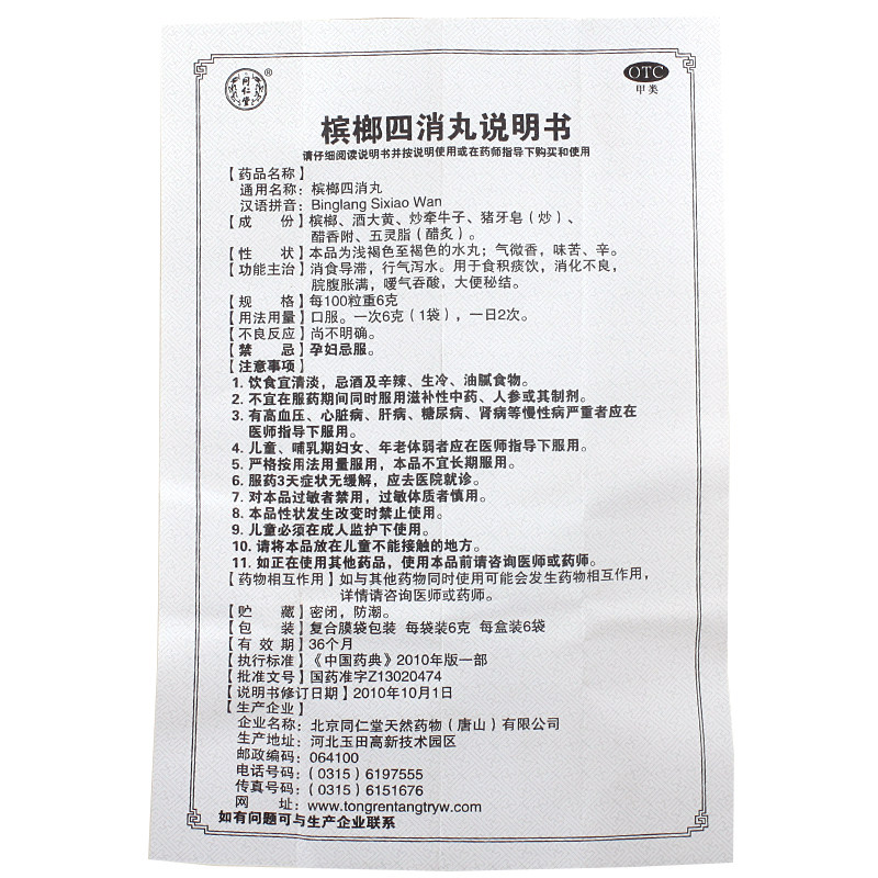 Hominin Church Betel Nut Four Elimination Pills 6g * 6 Sacks Of Digestive and Digestive Symptoms of Poor Large Constipation