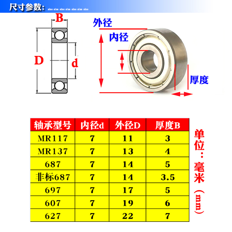 High quality deep groove ball miniature bearing MR117 687 697 627 ZZ RS inner diameter 7mm
