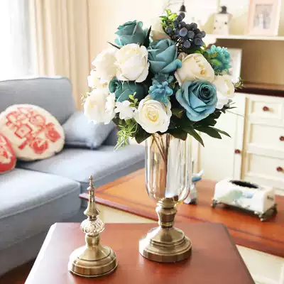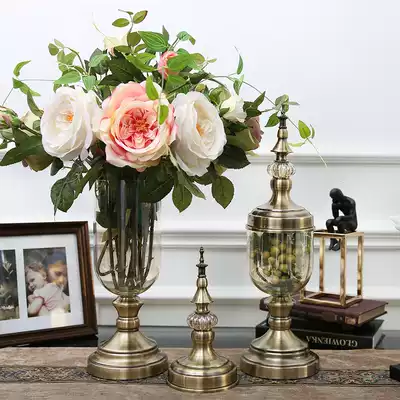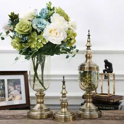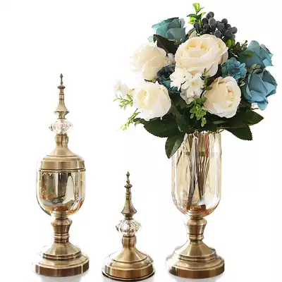 American crystal vase decoration living room flower arrangement European retro simulation flower dried flower modern TV cabinet decoration