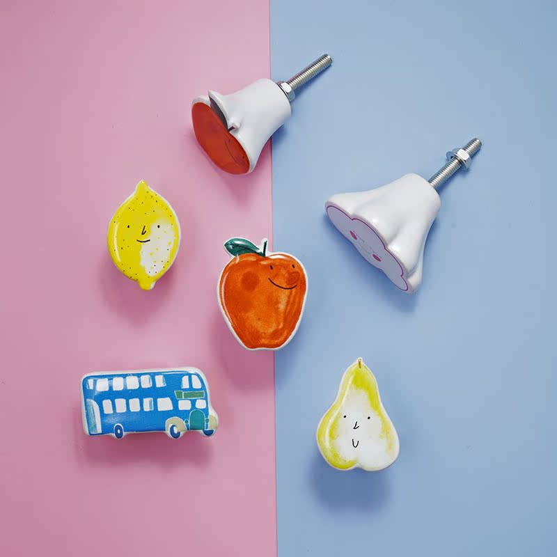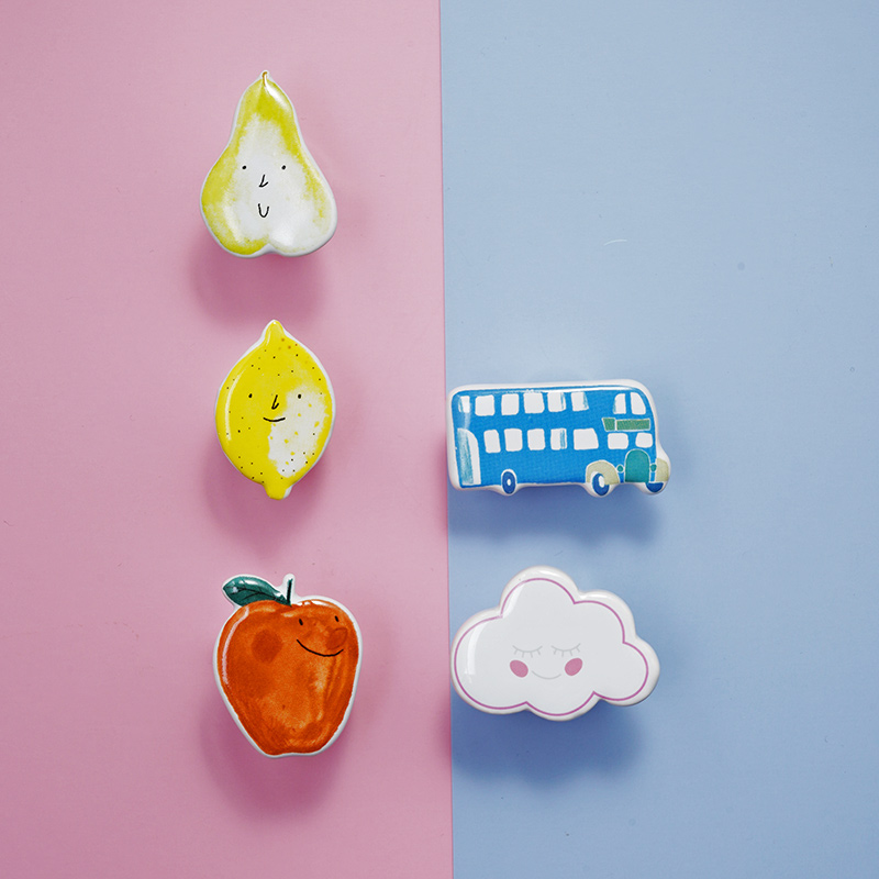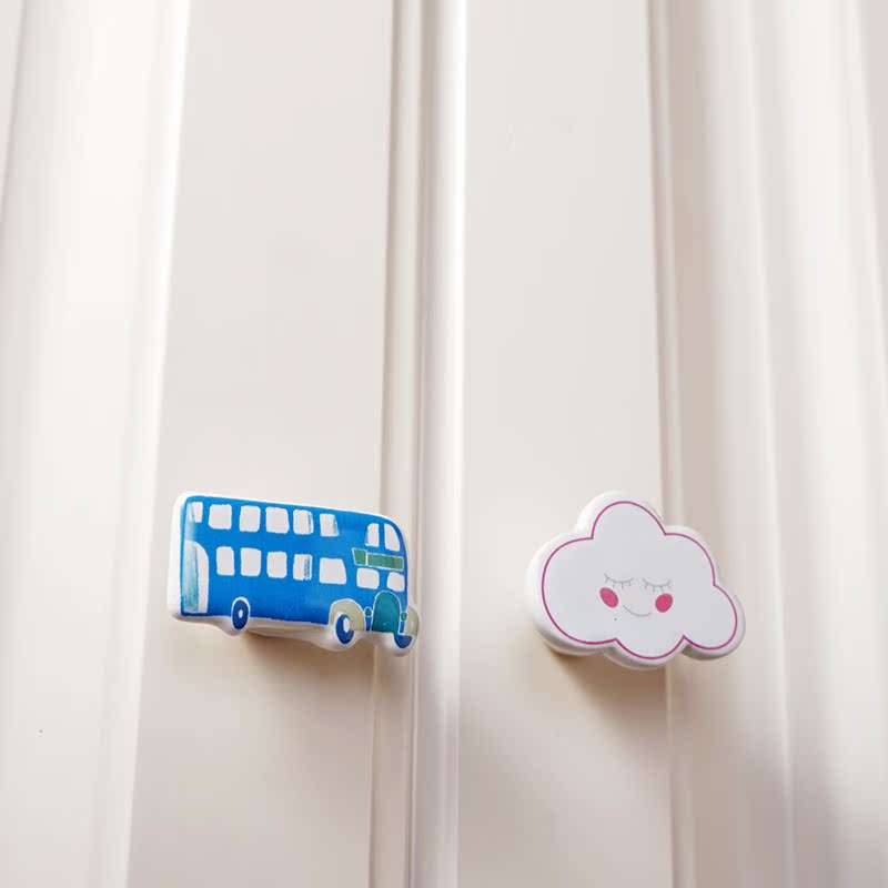 Cartoon Ceramic Wardrobe Handle Children Room Containing Cabinet Drawers Colored Clouds Car Fruit Cabinet Handle