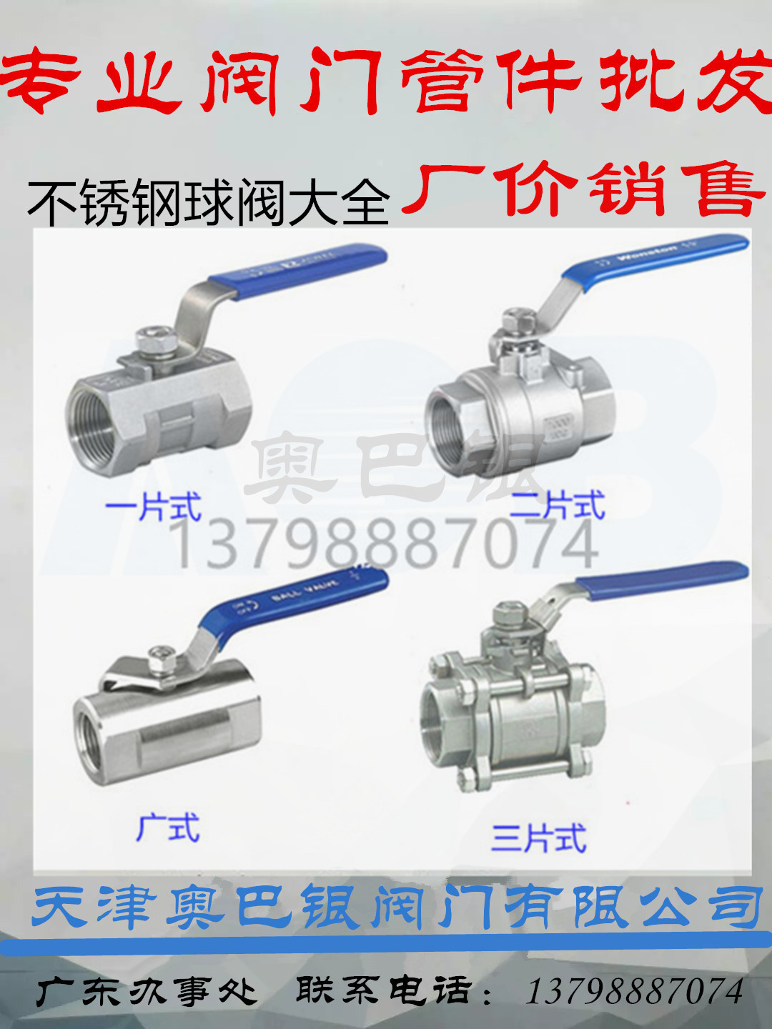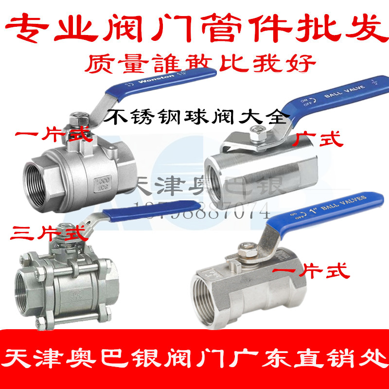 Milky white 304-piece ball valve 2 points = DN8304 two-piece ball valve 3 minutes = DN10304 two-piece ball valve 4 points = DN15304 two-piece ball valve 6 points = DN