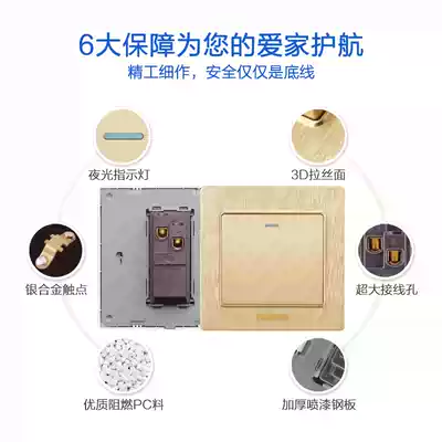 International Electrotechnical champagne color 86 switch socket panel double one-open double-cut lamp mutual control back and forth switch