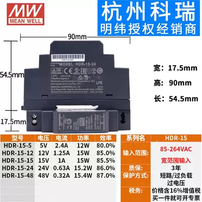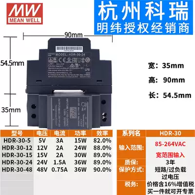 Meanwell HDR rail DR-15 30 60 100 150w switching power supply 5V 12V 15V 24V 48V