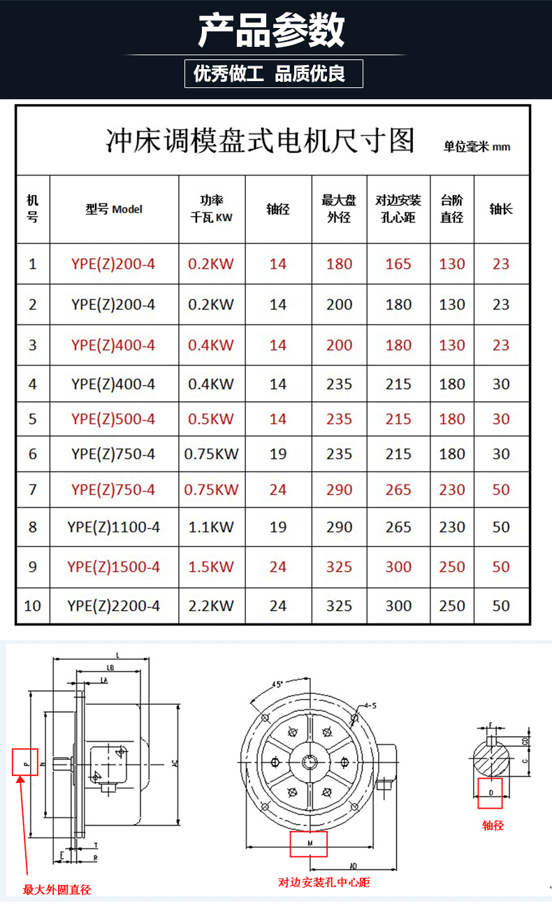 Punch slider mold adjustment motor YPE750S-4Z punch disc motor YPE400S-4Z mold adjustment motor 750W