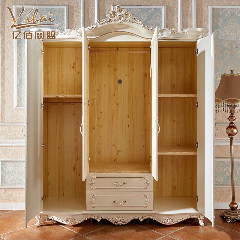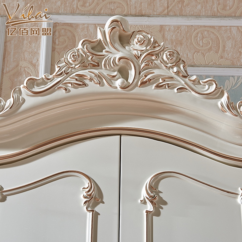European-style wardrobe four-door 2-meter storage cabinet bedroom luxury solid wood pearlescent paint bedroom custom tracing gold large wardrobe
