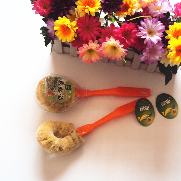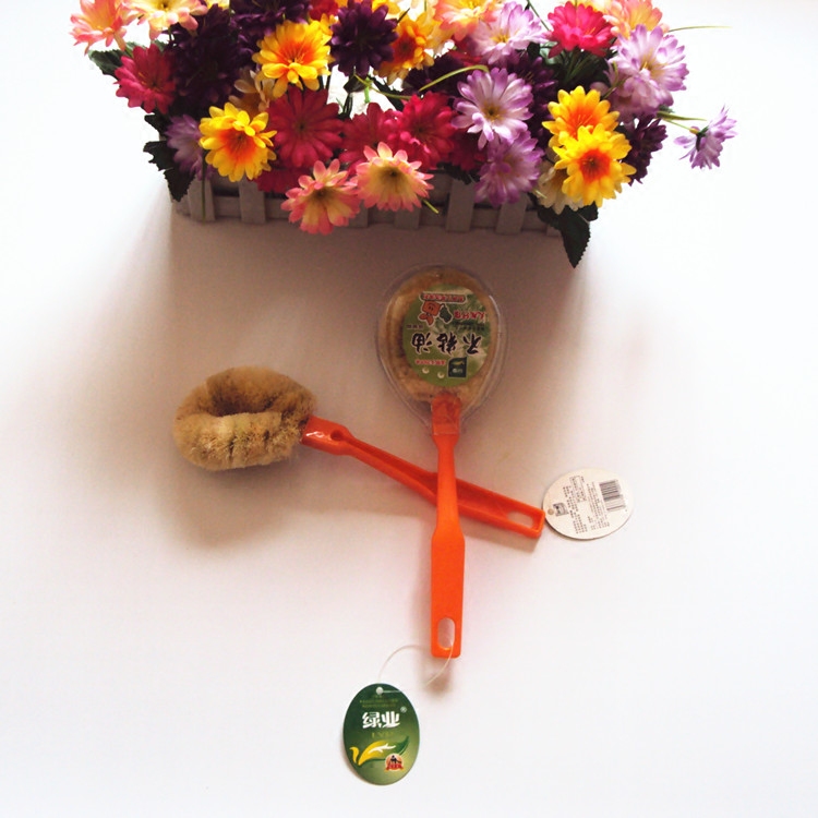 Natural coconut palm non-stick pan brush, kitchen scrubbing artifact, long-handled kitchen brush, dishwashing, pot degreasing