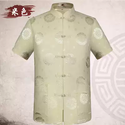 Middle-aged and elderly summer short-sleeved Tang suit men's retro Chinese ethnic style plate buckle loose Chinese shirt top large size suit