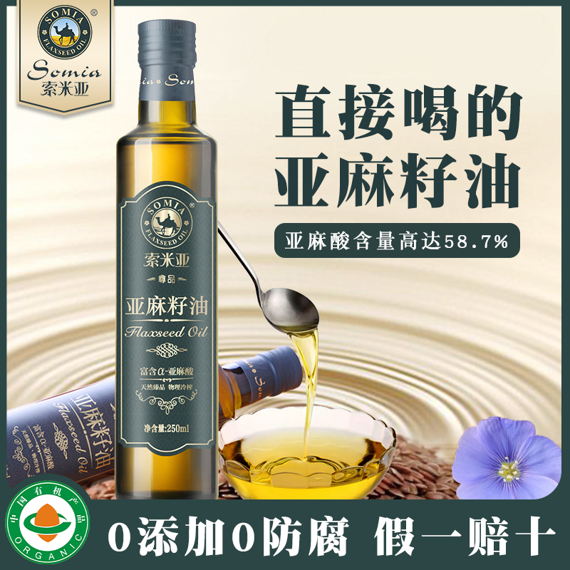 Somia official flagship store organic pure linseed oil cold pressed first-grade fat reduction gold medal edible oil 250ml