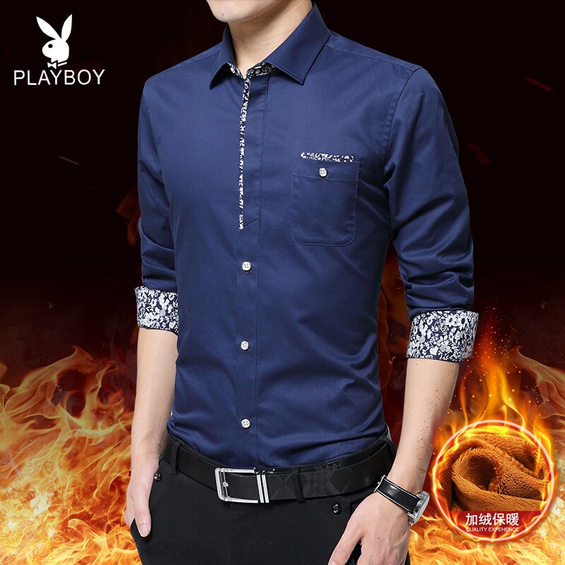 Flowers Playboy Casual Shirt Male long sleeves Body Pure Cotton Business Career Work Positive Dress Spring And Autumn Men's Shirts