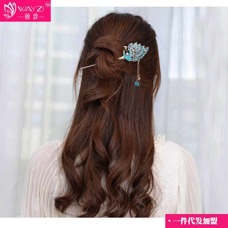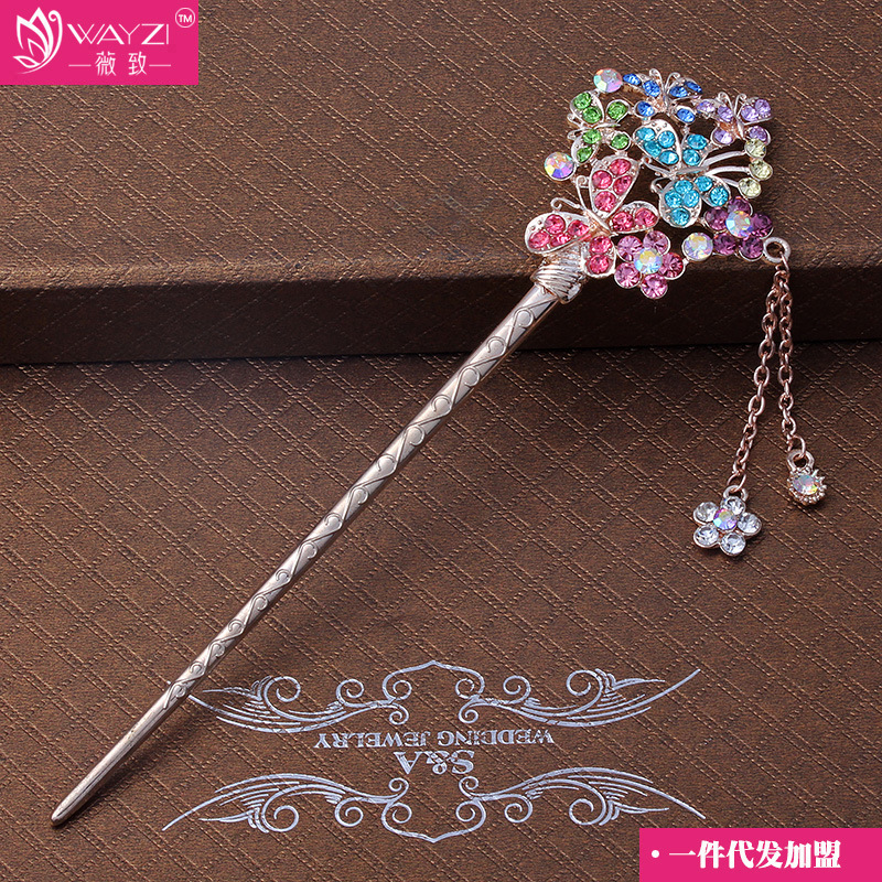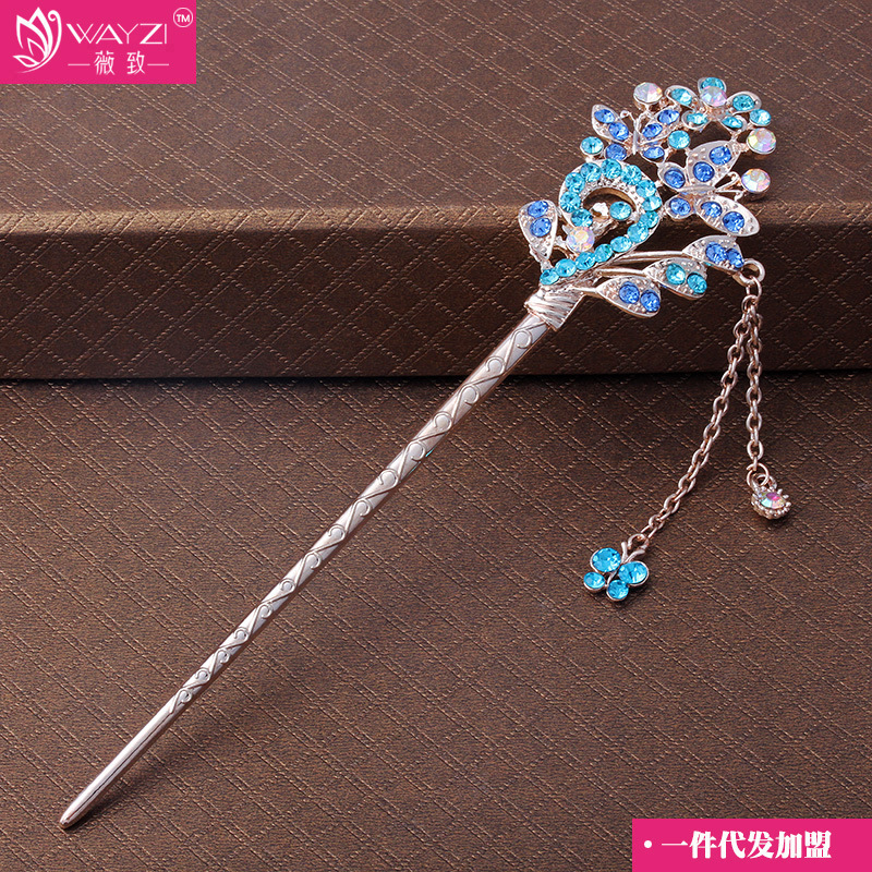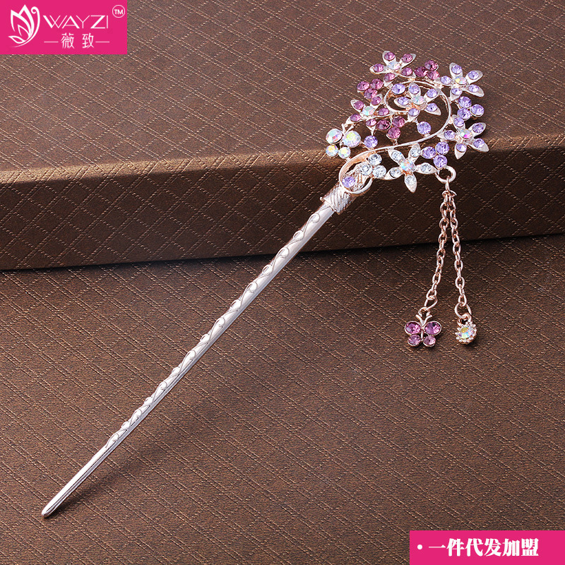 Three Sheng III Peach Blossom Classical Retro Wind Hair Hairpin Flow Su Walk Full Drill With Alloy Head Decorated Disc Hairpin Hair