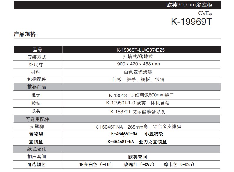 K-19969T-UP-LU Matt White K-19969T-UP-C97 Rose Red K-19969T-D25 Mocha color