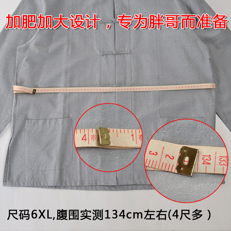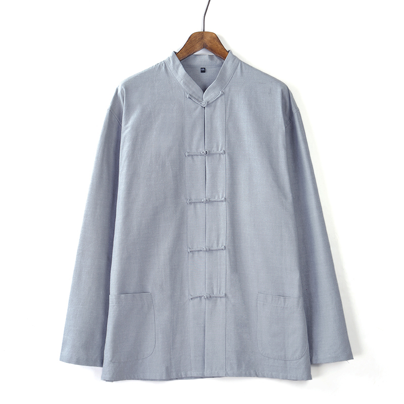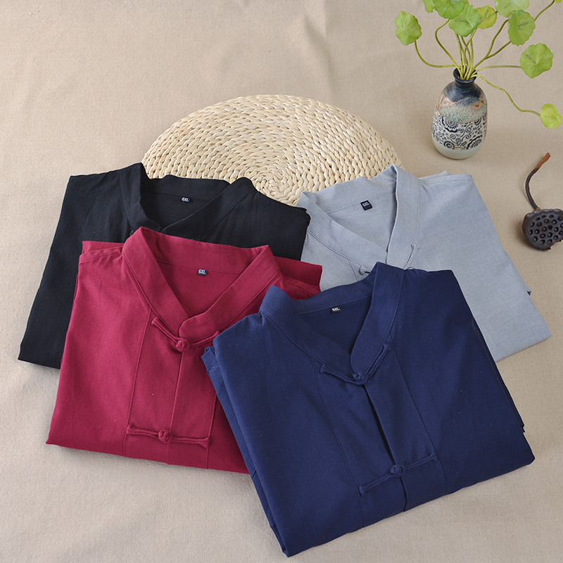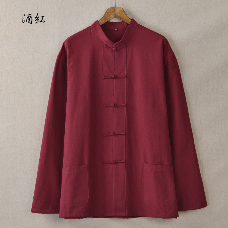 Enlarged and fertilized cotton coarse cloth Tang suit men's spring and autumn Chinese style long-sleeved shirt Chinese style large size casual men's clothing