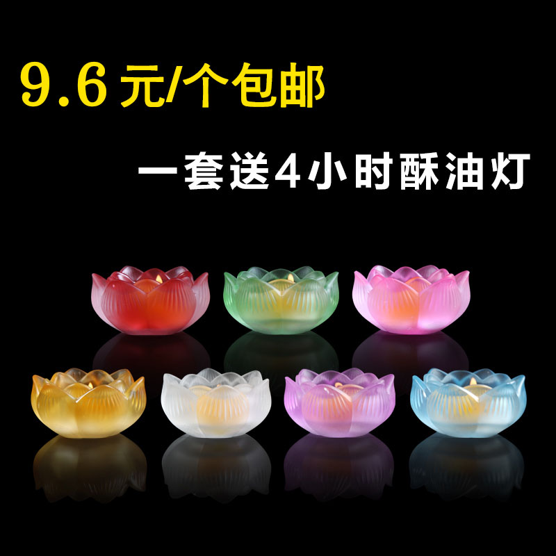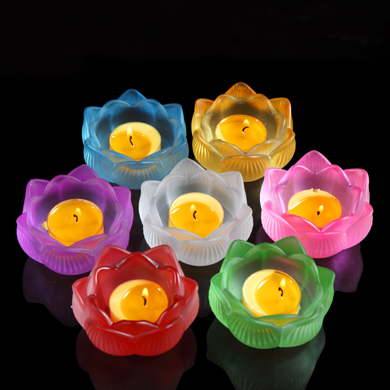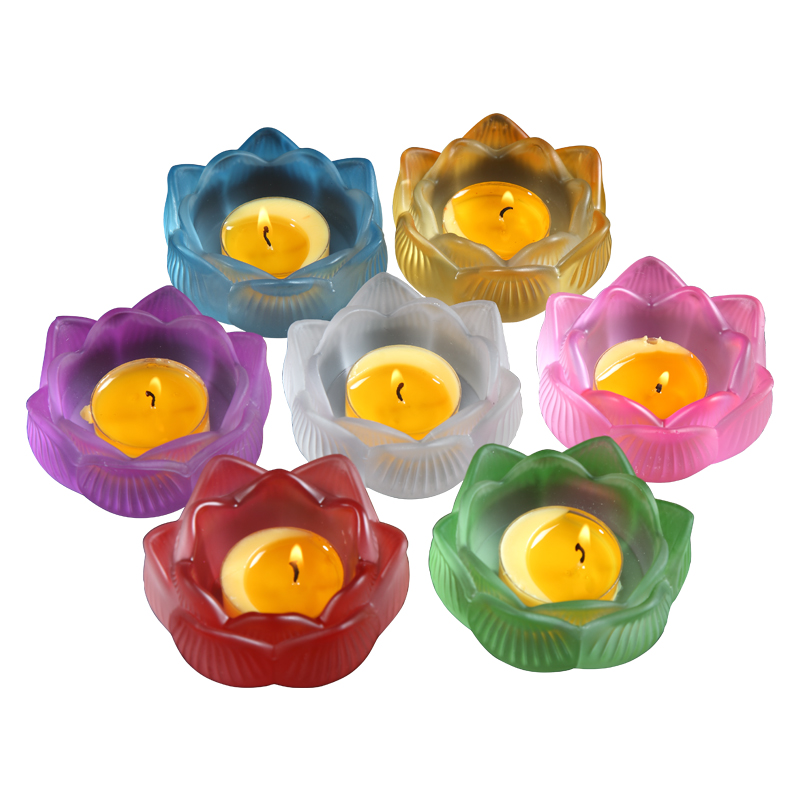 Colorful imitation colored glaze lotus candle holder butter lamp base Buddha lamp holder Chinese butter candle holder