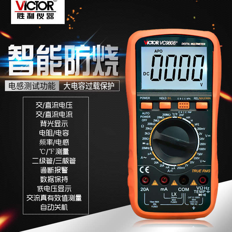 Victory high precision digital multimeter VC9808 multi-meter with capacitor frequency temperature inductor