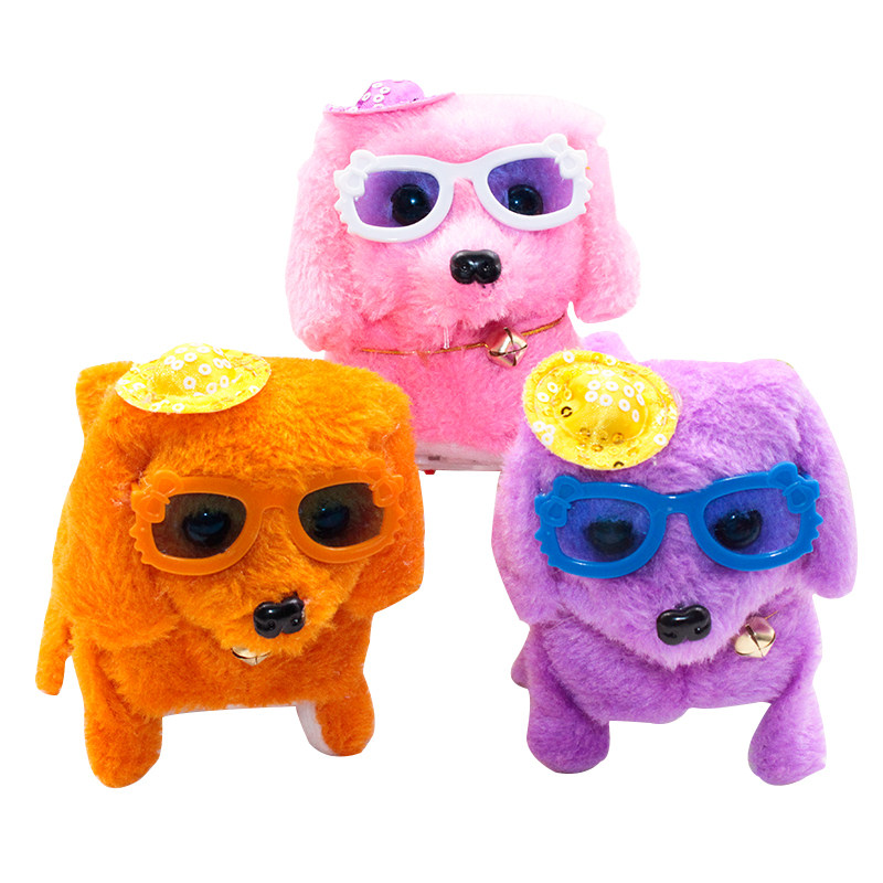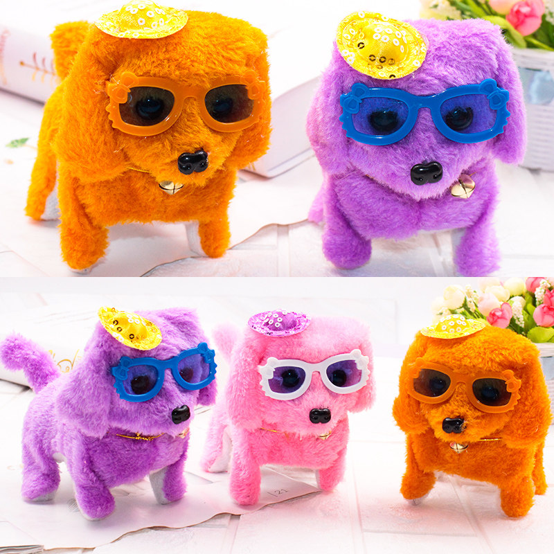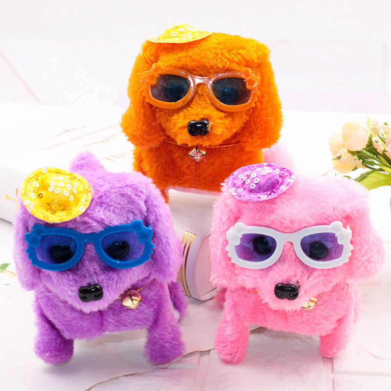 Hot selling electric puppy wool suede toy to walk backwards will be called eye lightening puzzle toy plush pooch