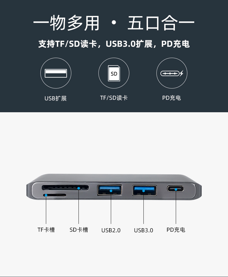Deep space gray Type-C to USB one drag two card reader PD charging with protective shell can not use titanium crystal silver Type-C to USB one drag three with protective shell
