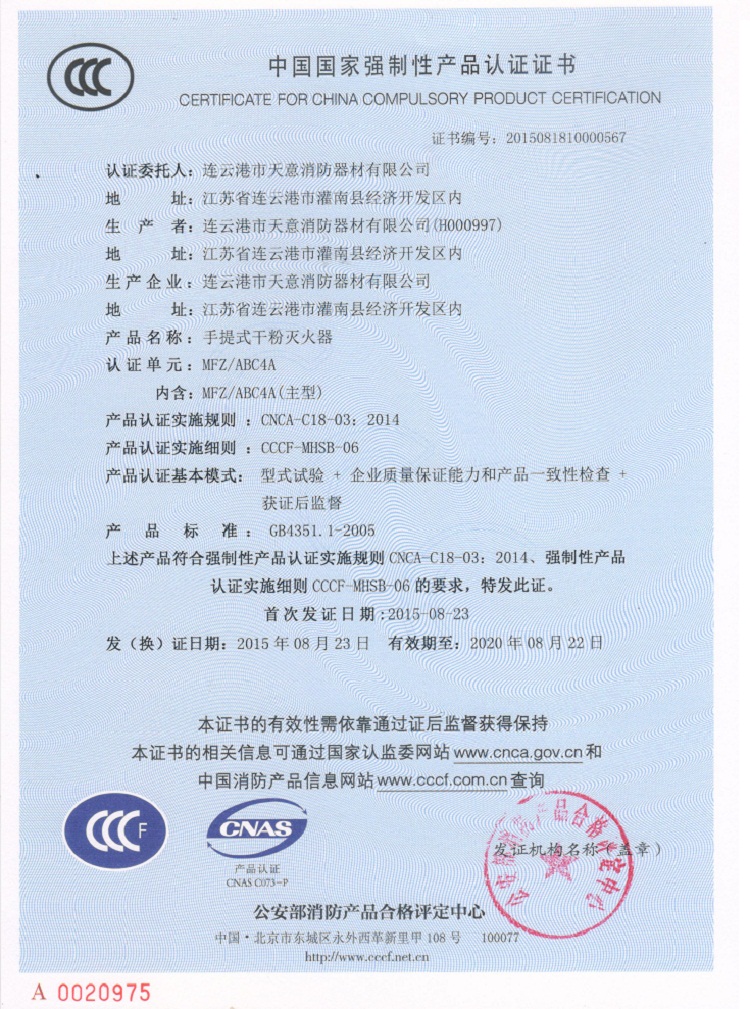 Type of fire extinguisher: