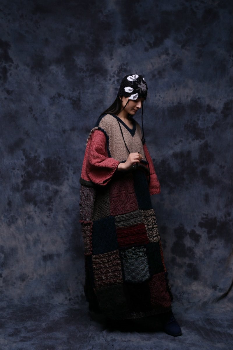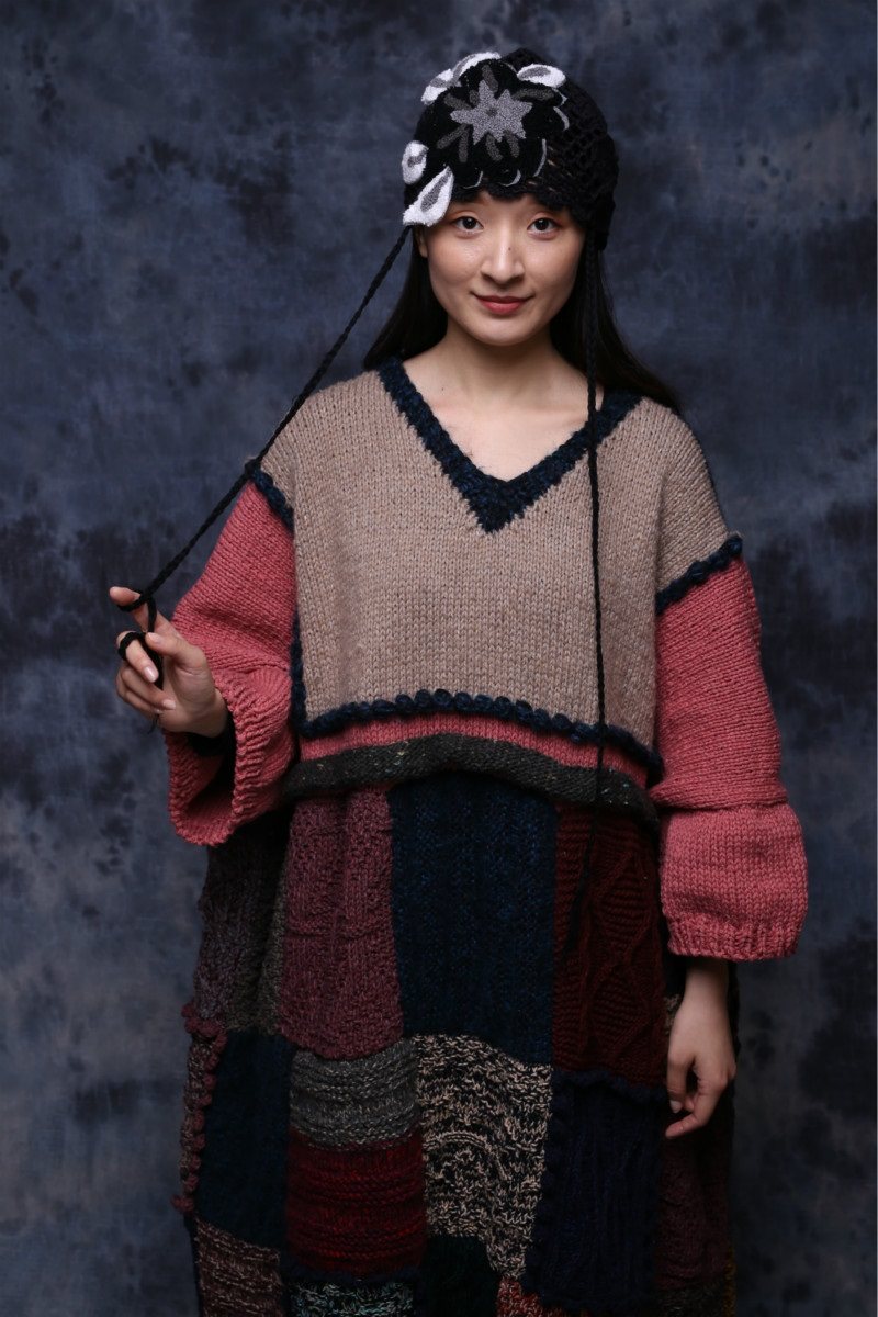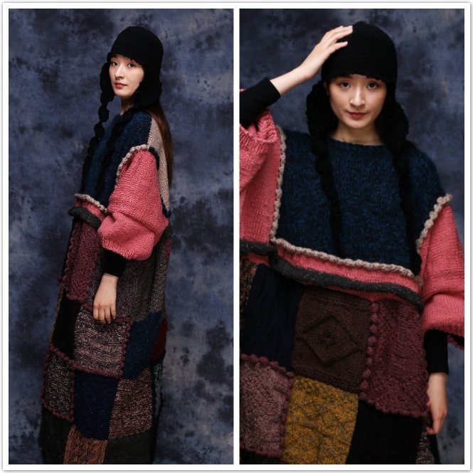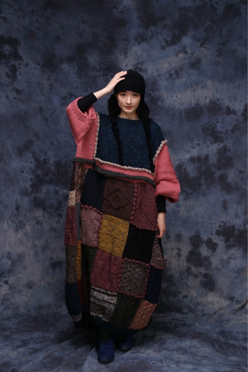 Memories of the hourglass ~ literary and art Fan retro pure handknitted wool thread splicing collab loose women's dress