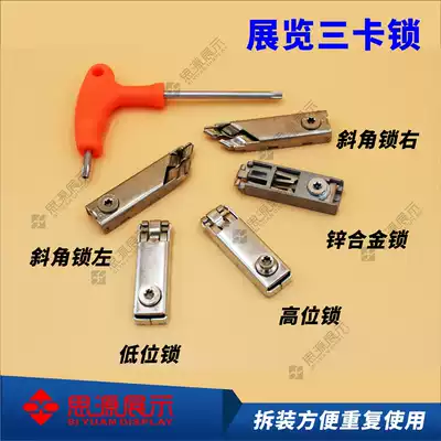 Iron sheet zinc alloy three-card lock for exhibition, Canton Fair logo flat aluminum key lock lock door diagonal connector