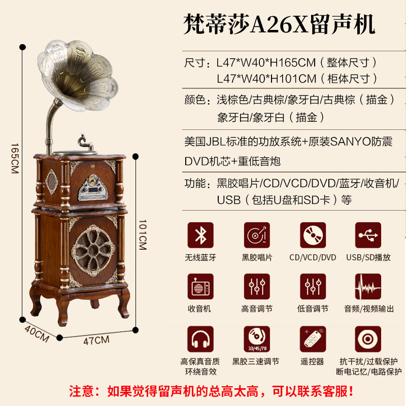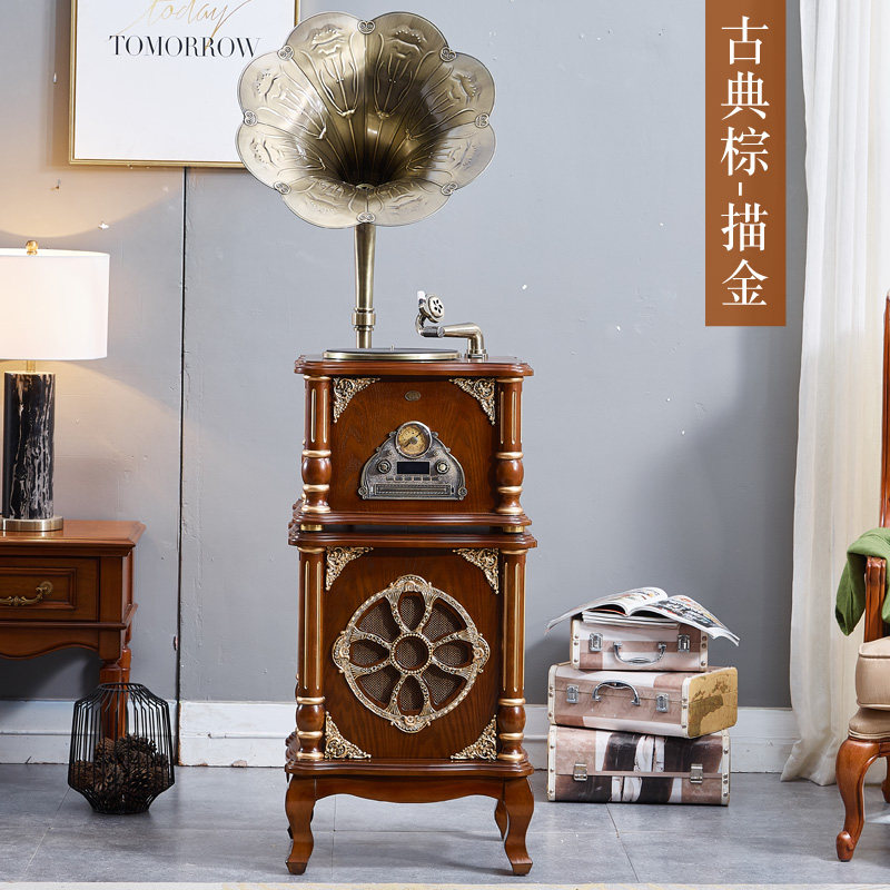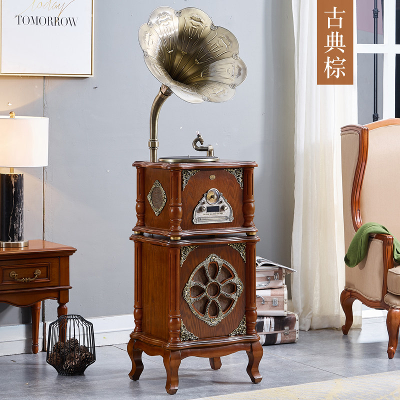 Eurostyle solid wood trumpeter vintage grammatical grammatical machine old black rubber record machine Classical Sound Living Room Pendulum electric record machine