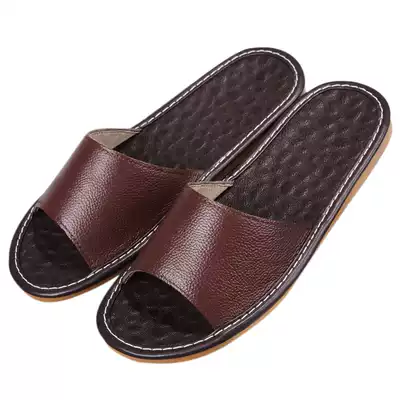 Haining home leather slippers summer head layer cowhide slippers massage non-slip bottom couple men and women home slippers