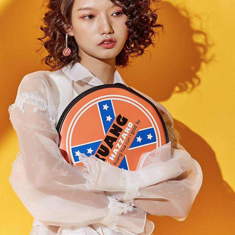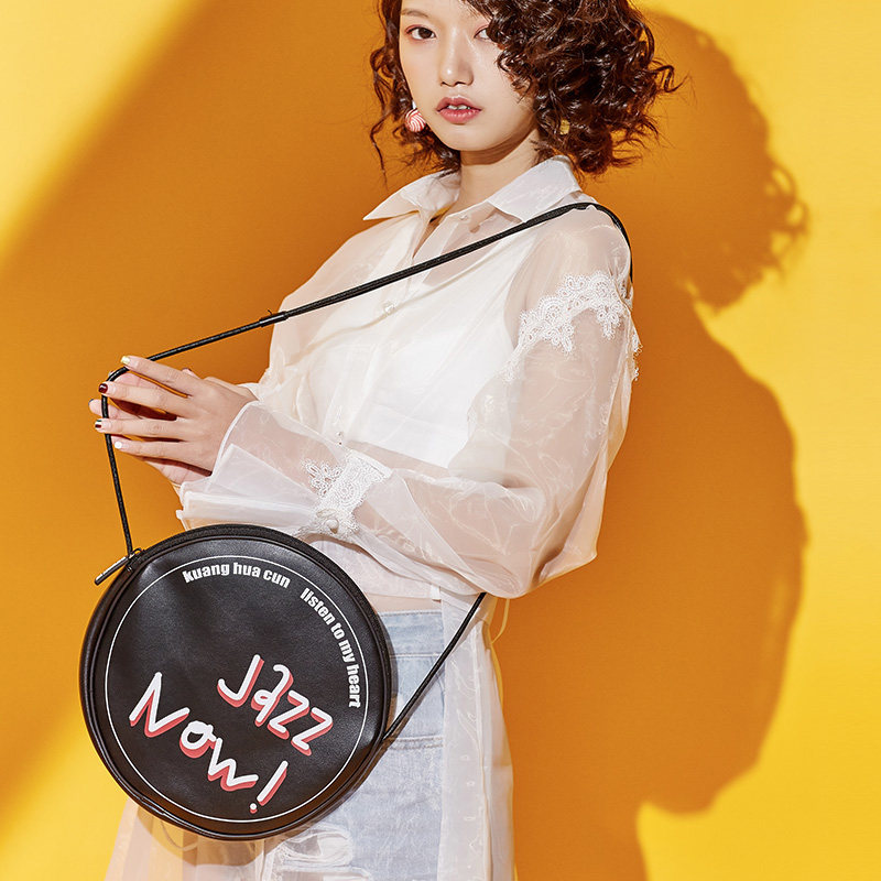 Bang Flowers Village 2017 New Retro Black Gum Record Round Bag Lady Cartoon Cute Bag Woman Han Version Tide Skew Satchel