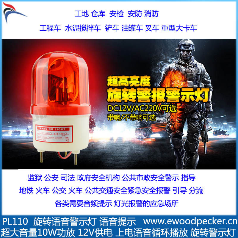 PL110 Voice Alarm Prompt Light Sound and Light Siren Voice Sound and Light Siren Electric Horn Warning Signal Light
