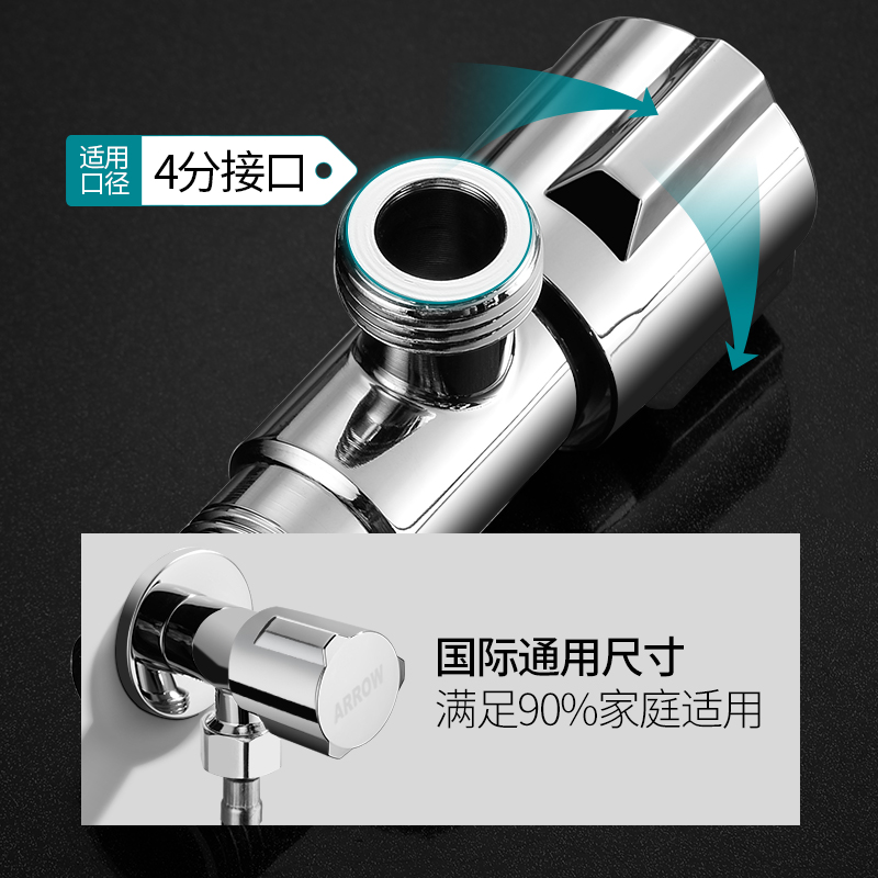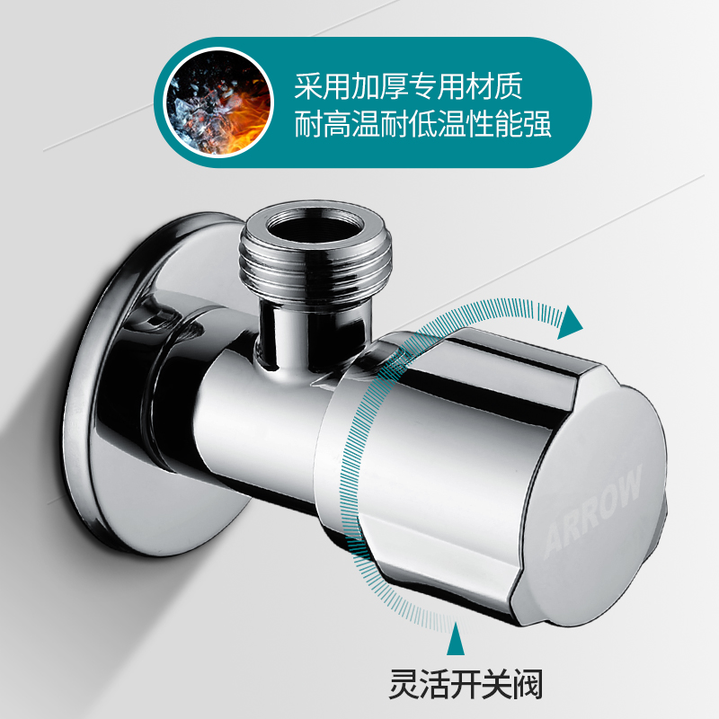 Arrow Plate Copper Plated Chrome Thickened Cold And Hot Water Triangle Valve Domestic Water Stop Valve Universal Water Heater Toilet Lengthened Eight-word Valve