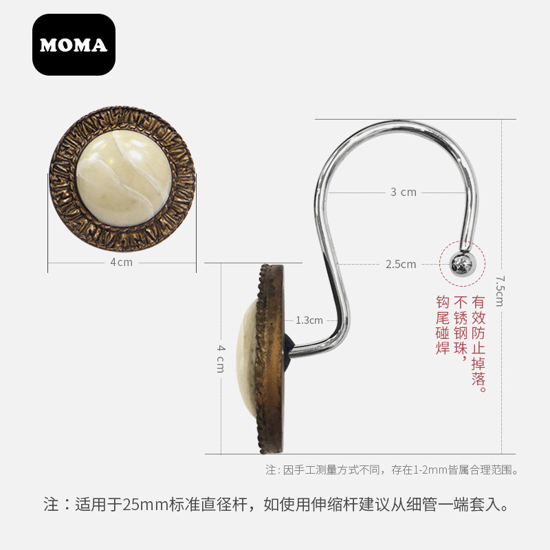 Merma Retro Eu Style American Antique Bath Curtain Accessories Bath Curtain Ring Bath Curtain Ring Resin Hooks Retro Decorative Hooks-Taobao