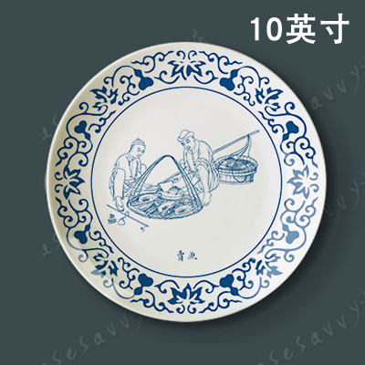 10-inch Qing Dynasty City View Three Rows Business People Green Flower Porcelain Dish Middle Dining Room Dining Hall Dining Room Decorated Hanging Pan Ceramic Pan