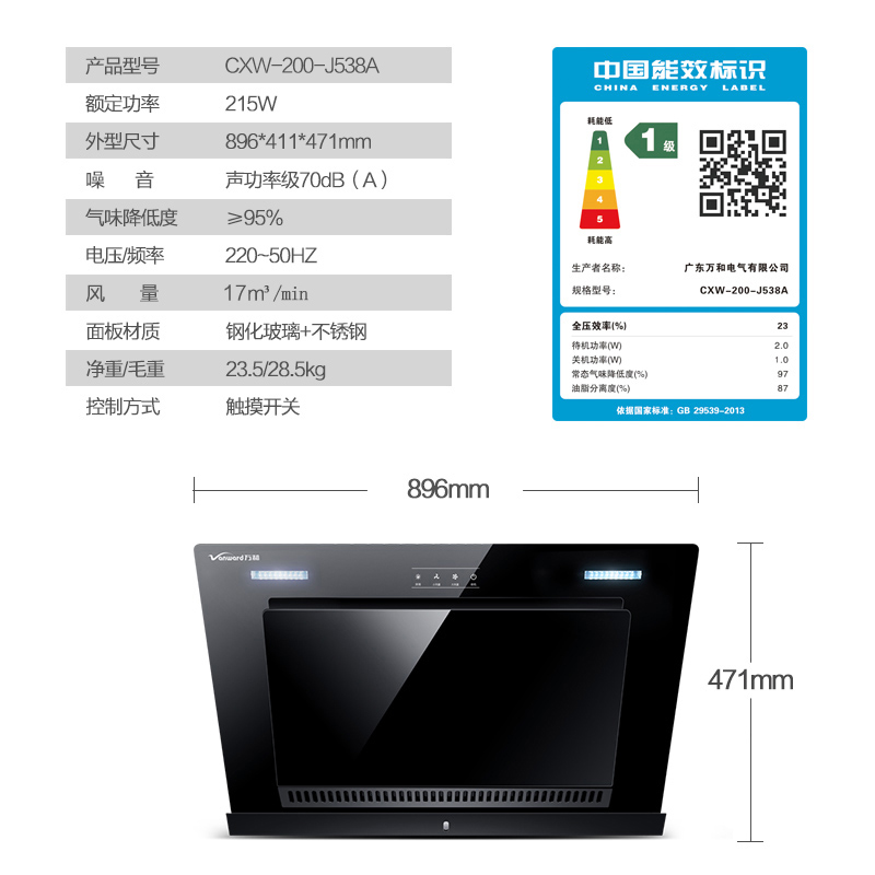 Vanward side suction range hood Large suction household wall-mounted kitchen smoking machine 90 cm