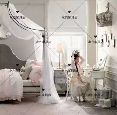 French court retro bed curtain American solid wood carved bed curtain frame European-style children's princess room decoration curtain head shelf