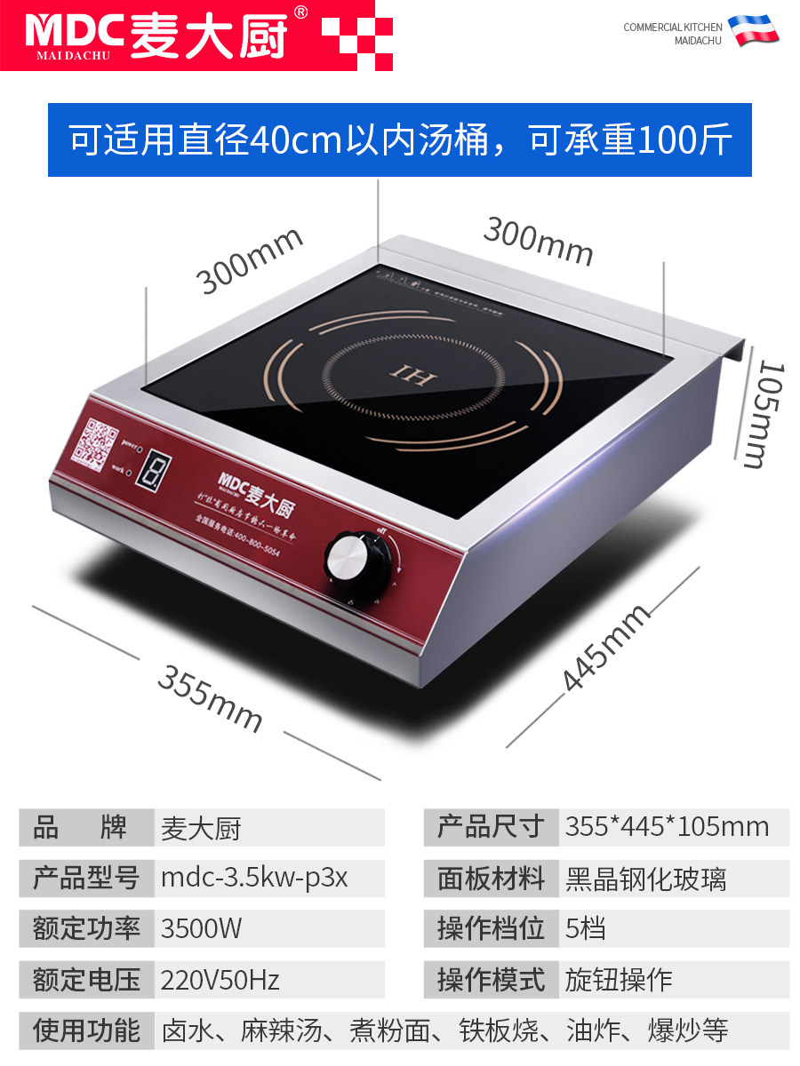 Chef Mak commercial induction cooker 3500w flat high-power commercial soup cooker Household stir-fry stove Electric stove