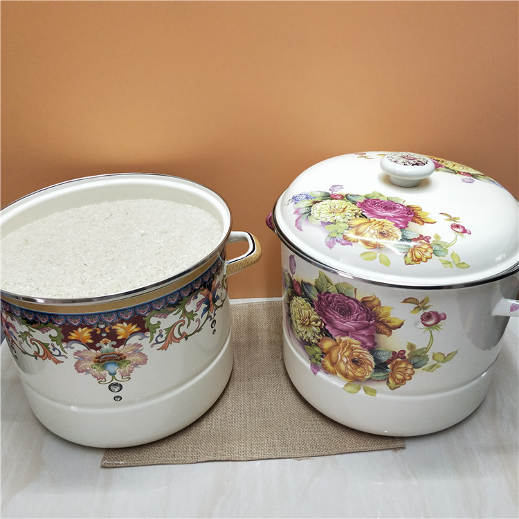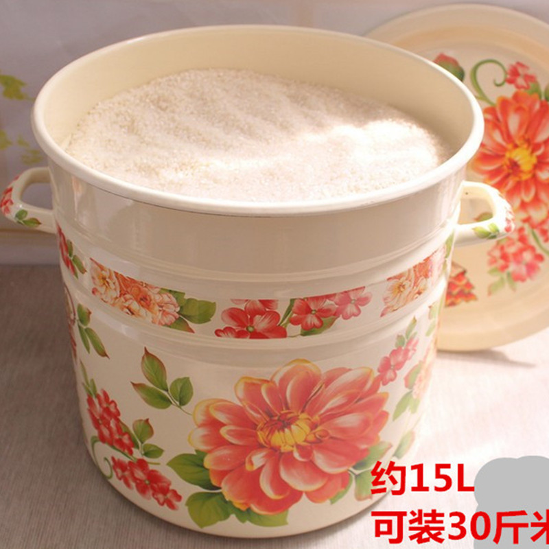 Wisp Zinc large red flower enamel enamel plus high thickened double ear soup pot size rice pail can fit 10 catty cylinders-Taobao