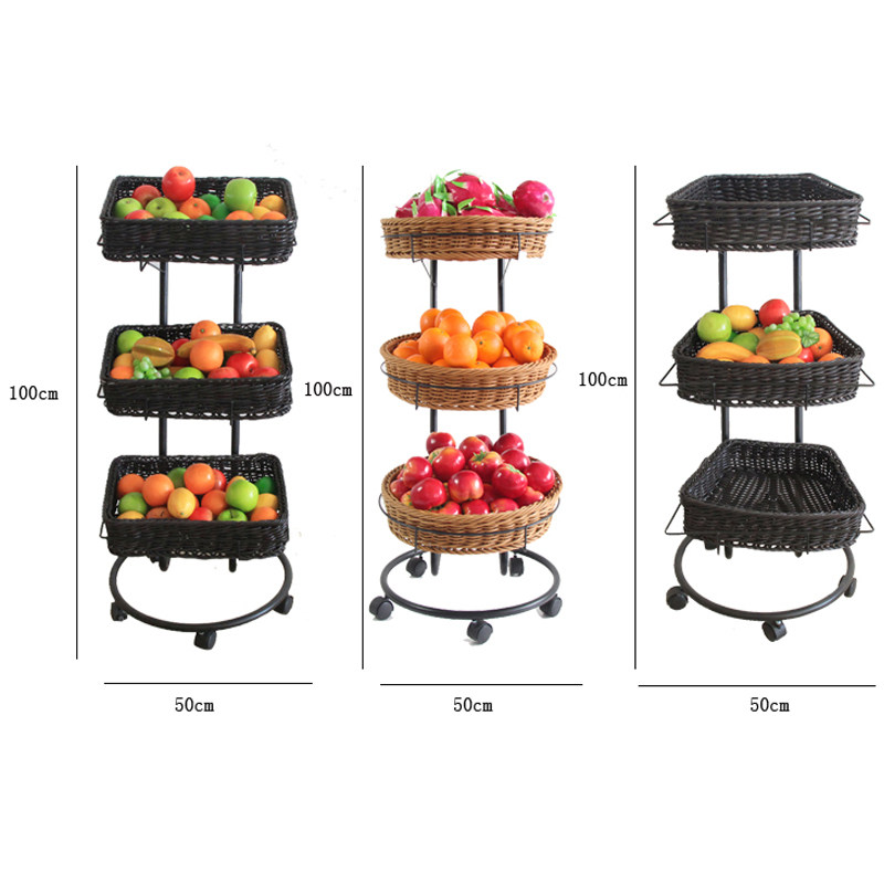 Supermarket shelves Fruit Vegetable Bread Display Shelf Convenience Store Snack Shelf Mobile Triple Cart