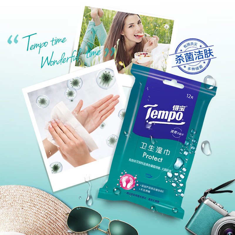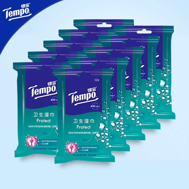 Tempo Debao 12 tablets*10 small packets of sanitary wipes Debao with carry household clean wipes