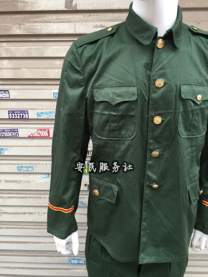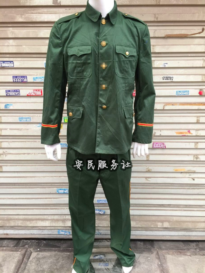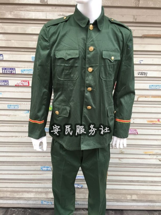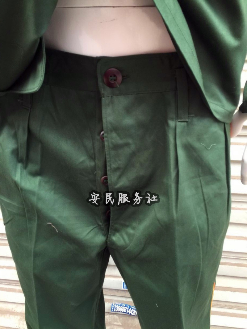 Old fashioned stock 87 style winter often served olive green polyester card winter hood suit old workwear