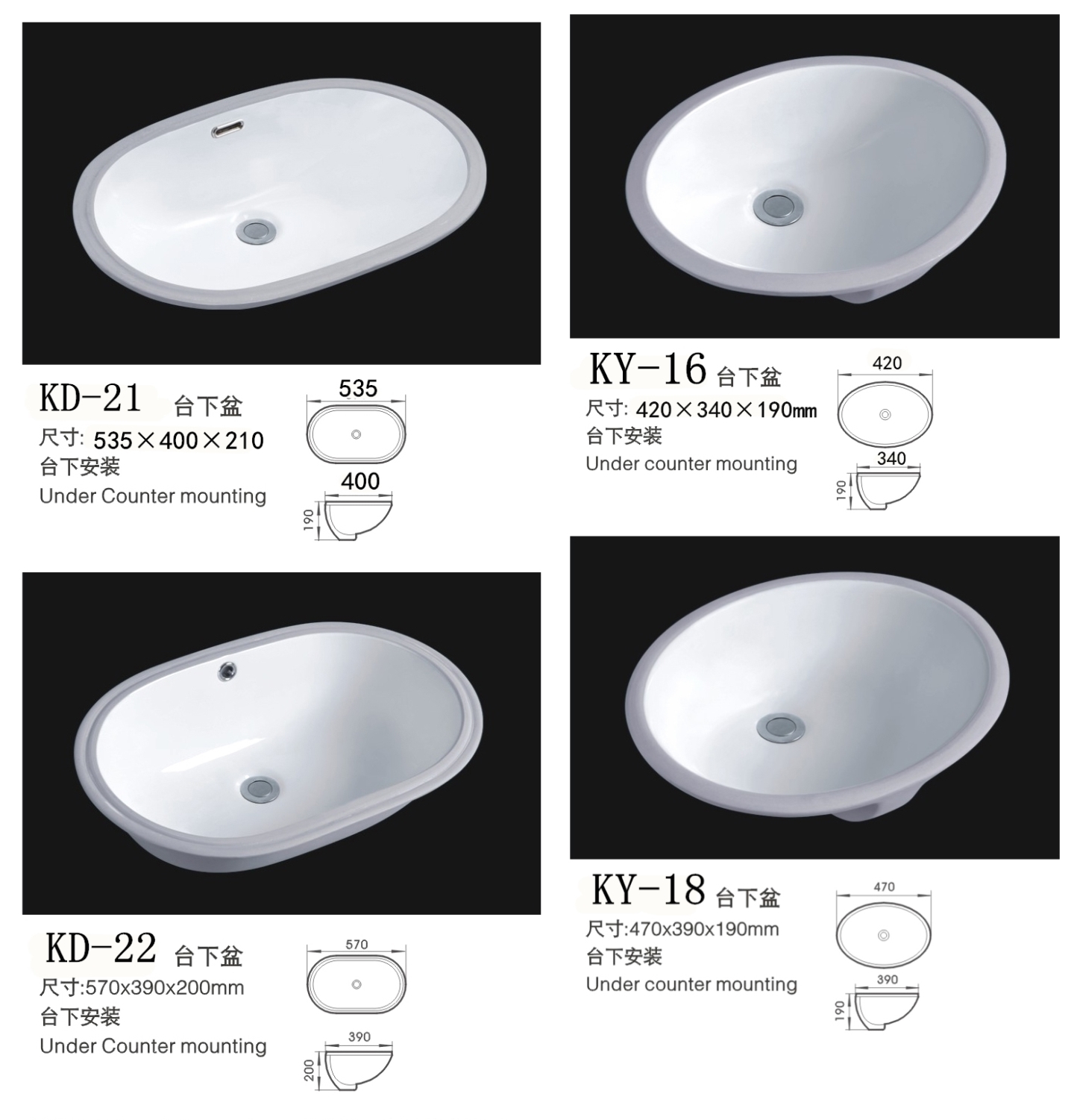 Under-counter basin oval basin washbasin Ceramic wash basin pool embedded 16-24 inch marble under basin
