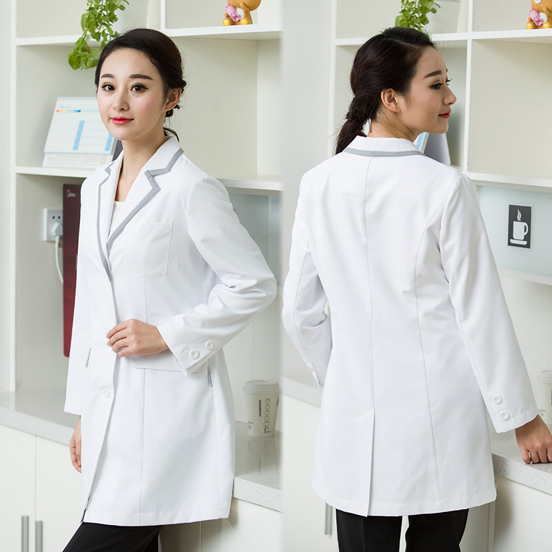 Han-style skin management work Grey Collar Side Medical Doctor Wear White Coat with Female Print Embroidered half permanent