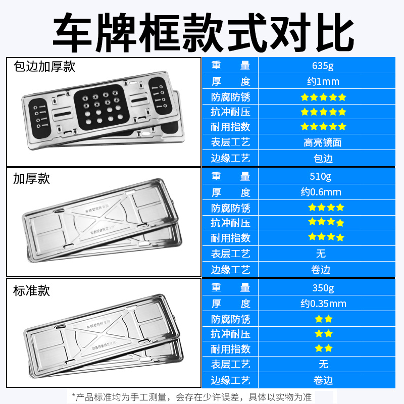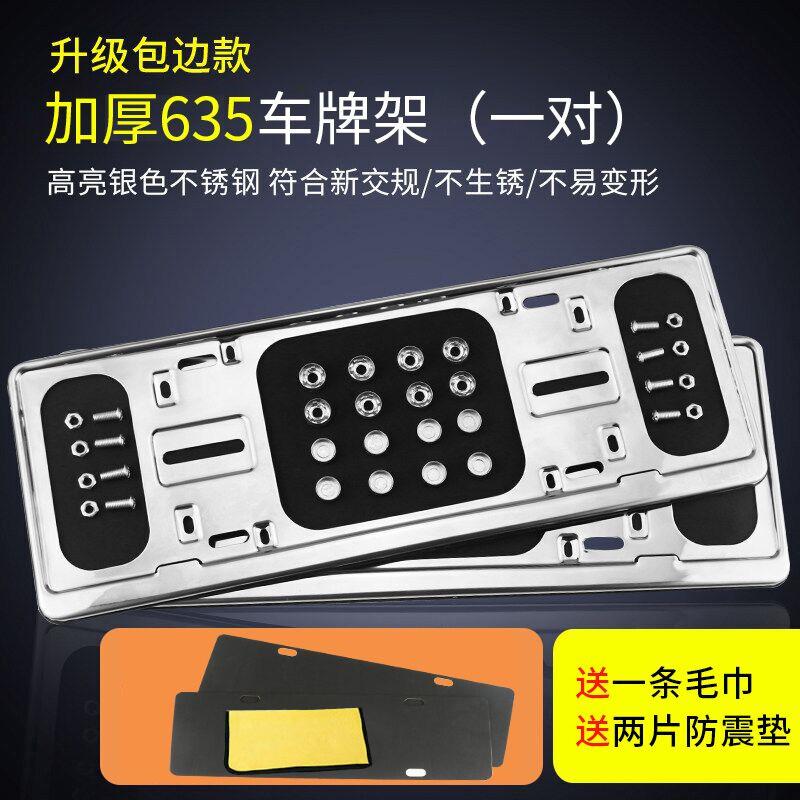 Stainless steel car license plate frame edging shelf Mercedes-Benz license plate frame New traffic regulations license plate sleeve frame pallet truck management office