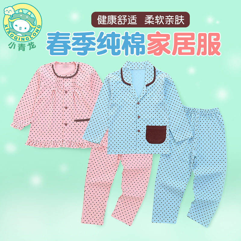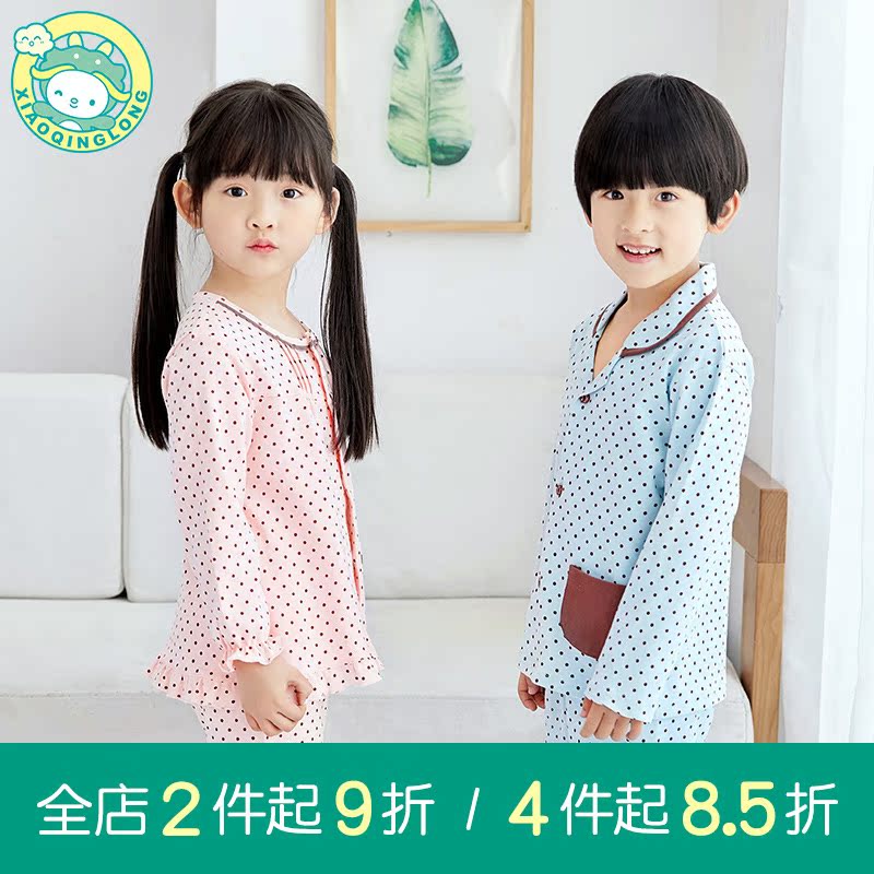 Xiaoqinglong children's pajamas Boys and girls middle and large children spring cotton baby children's home clothes 5-7-9 suit
